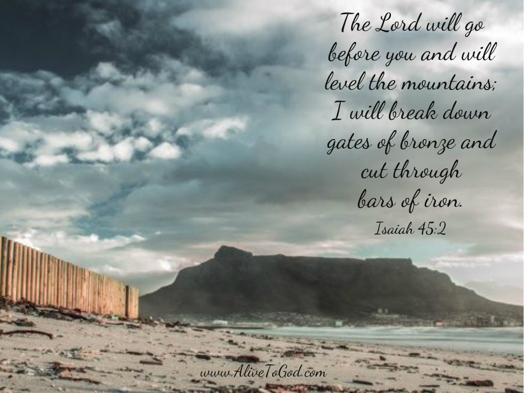 ‘I (the Lord) will go before you and will level the mountains; I will break down gates of bronze and cut through bars of iron.’