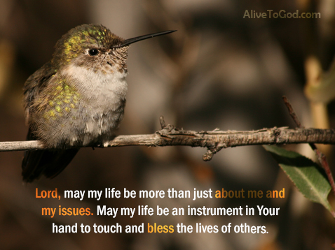 Prayer: Lord, may my life be more than just about me and my issues. May my life be an instrument in Your hand to touch and bless the lives of others. Amen.