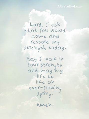 Prayer: Lord, I ask that You would come and restore my strength today. May I walk in Your strength and may my life be like an ever-flowing spring. Amen.