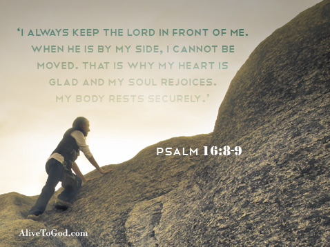 ‘I always keep the LORD in front of me. When He is by my side, I cannot be moved. That is why my heart is glad and my soul rejoices. My body rests securely.’