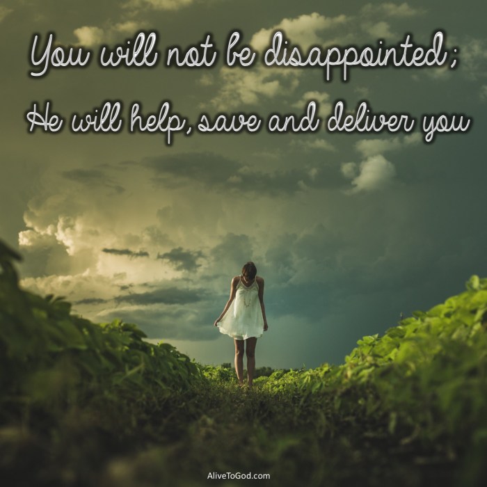 - You will not be disappointed; He will help, save and deliver you.