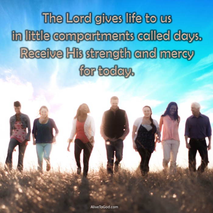 - Each day should be lived with the strength that He gives us for that day.