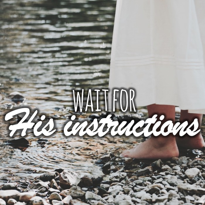 - Don’t rush ahead and do your own thing, wait for His instructions.