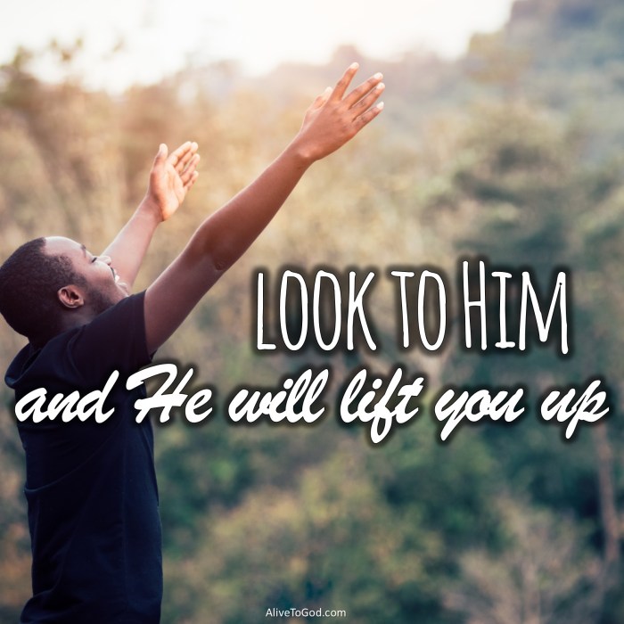 • Don’t look at your circumstances, but look to Him and He will lift you up.